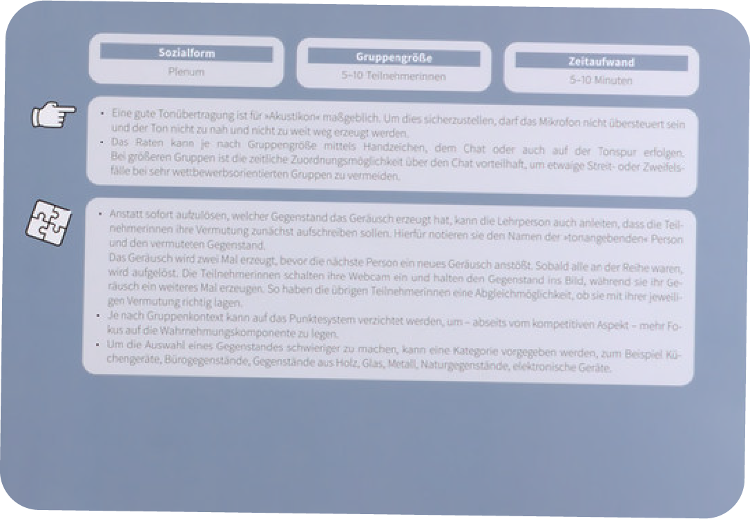 Leiden Ihre Online-Veranstaltungen unter „Zoom-Müdigkeit“ und nachlassender Aufmerksamkeit? Entdecken Sie unsere „Webigizer“, ein Kartenset mit 50 aktivierenden Methoden, konzipiert, um jede Online-Veranstaltung, sei es ein Seminar, Meeting oder eine Konferenz, in ein dynamisches und interaktives Erlebnis zu verwandeln.